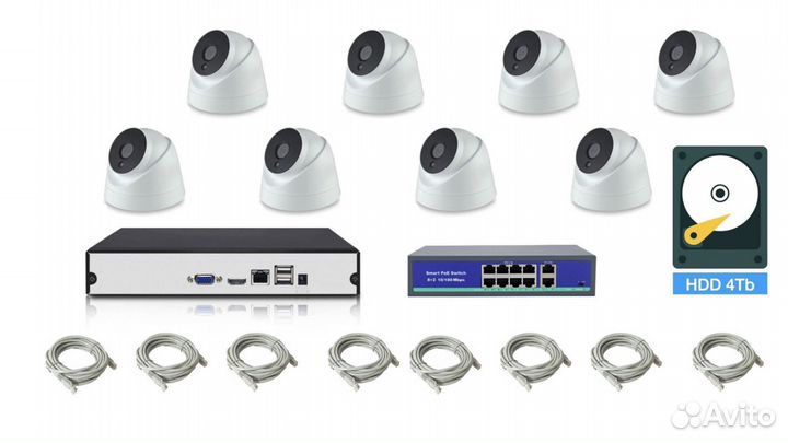 Полный IP POE комплект видеонаблюдения на 8 камер