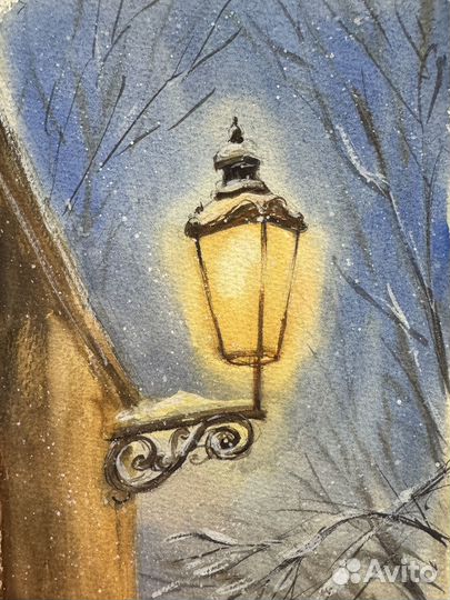 Картина акварелью вечерний фонарь
