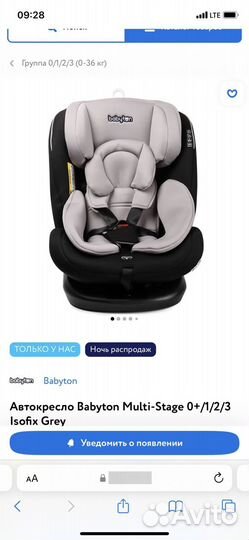 Детское автокресло от 0 до 36 с isofix