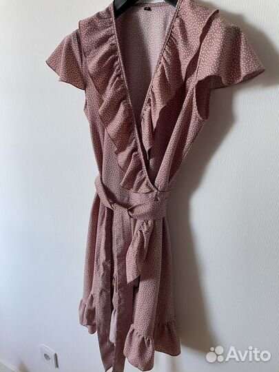 Летнее платье на запах в горошек, размер 44