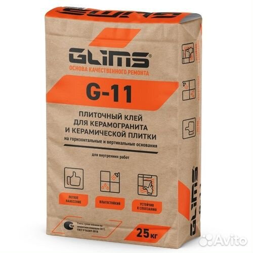 Клей плиточный glims G-11 для облицовки стен