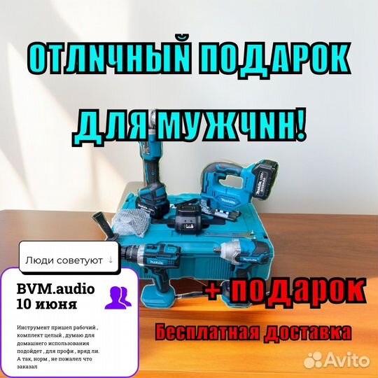 Набор инструментов Makita 4 в 1 + 2 АКБ