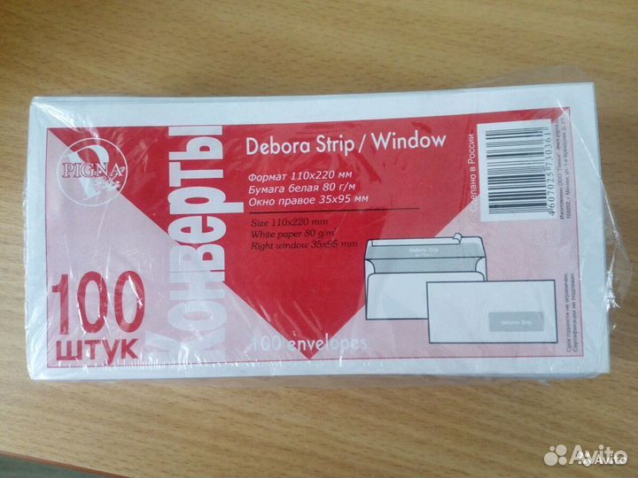 Конверт почтовый Pigna (110x220 мм) белый удаляема