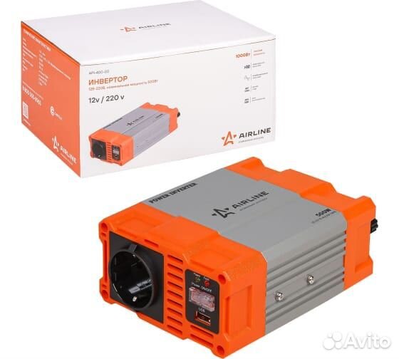 Инвертор Airline 12В-220В, 500 Вт API-400-03