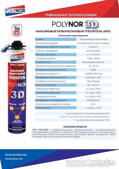 Напыляемый полиуретановый утеплитель Polynor 3D