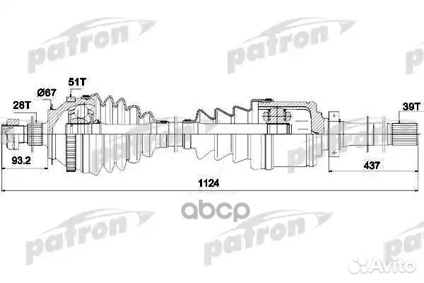 Полуось передний мост слева 27X671X60X25 ABS:46T