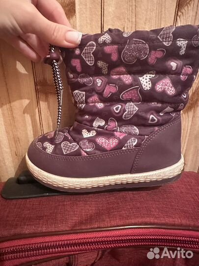 1 800 ₽Зимние сапогиЗимние сапогиВ очень хорошем состоянии. Носили один сезон, аккуратно. Состояние видно на фото. Нога быстро выросла. Зимой тепло, комфортно. Нога в них не потеет. По стельке 25см.