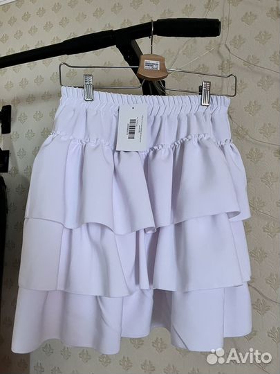 Юбка с воланами белая 48