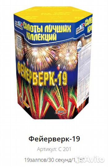 Салют фейерверк на 19 залпов до 45 метров