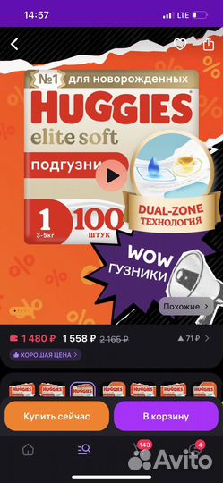 Подгузники хаггис elite soft 1