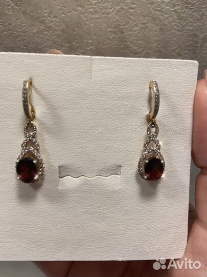 Золотые серьги с гранатом 585