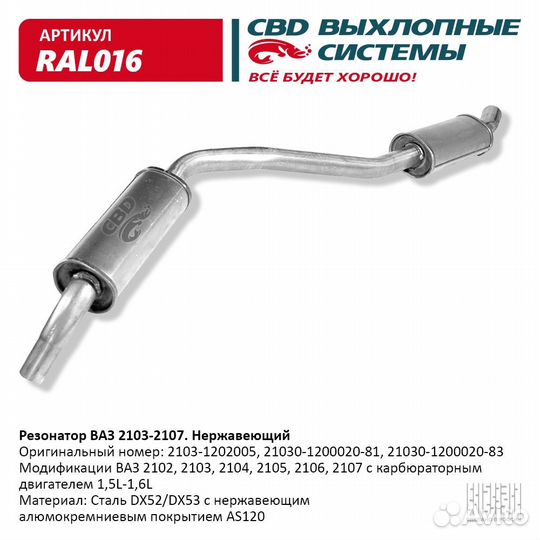 Резонатор ваз 21073, 21053 Евро 2, закатной. CBD. R030