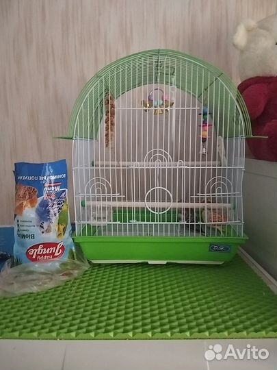 Попугай неразлучники с клеткой
