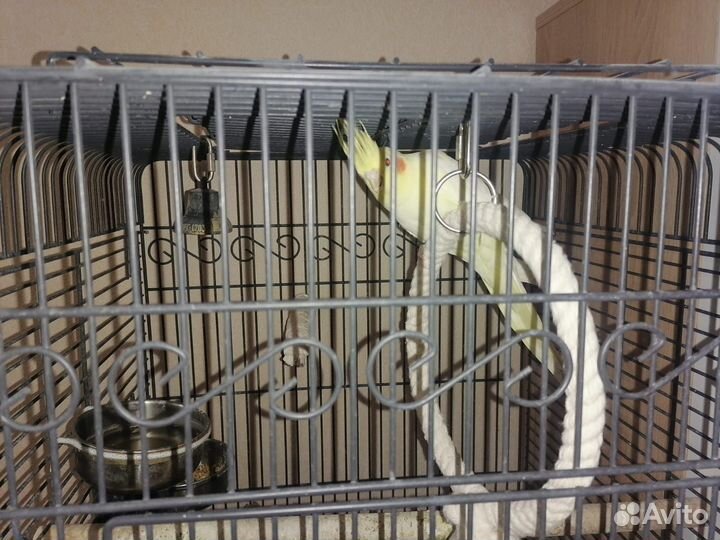 Волнистый попугай с клеткой