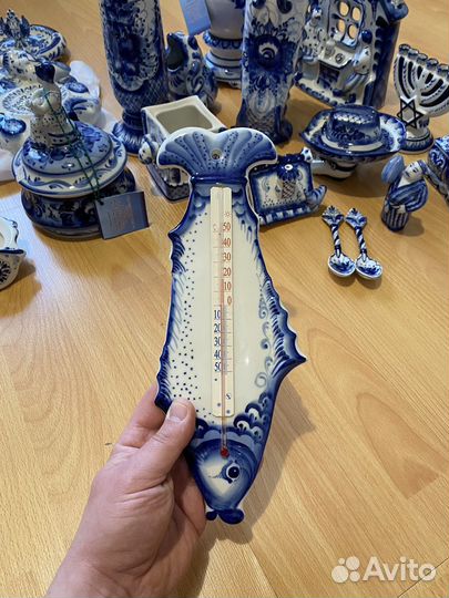 Гжель термометр настенный"Рыба"