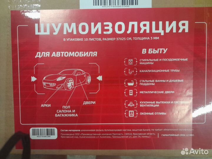Объявления по запросу «шумопоглотители для шумоизоляции автомобиля»