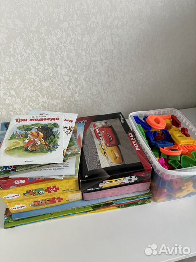 Пазлы, книжки, буквы на магнитах
