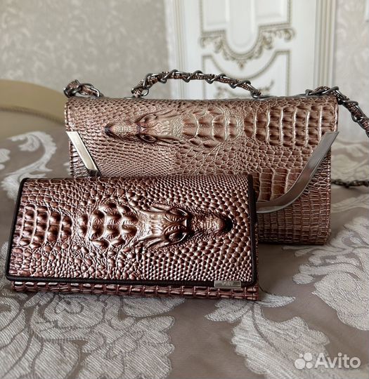 Сумка клатч и кошелек с крокодилом