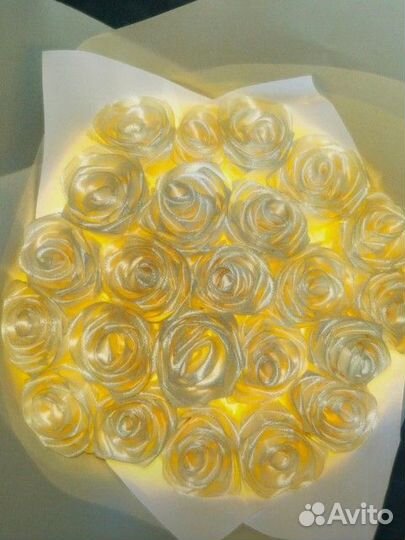 Букет из атласных роз (лента)