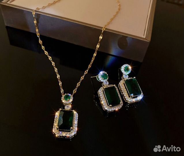 Ювелирный набор с цирконием заленого цвета. Новый