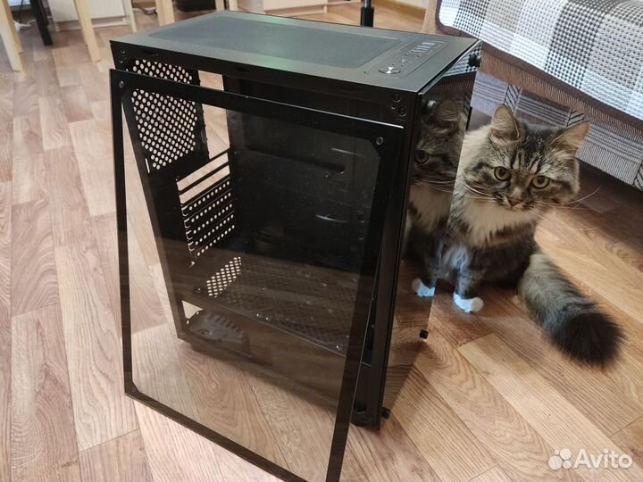 Передняя панель полностью исправна, 2 закалённых стекла, полноразмерный ATX.