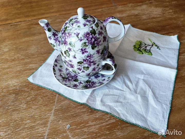 Новый сервиз, привезен из Турции. Ни разу не использовался, стоял как декоративное дополнение на кухне в морском стиле. Чайник для заварки, молочник, 4 чашки с блюдцами и солонка с перечницей.