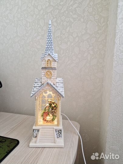 Светильник с эффектом снегопада церковь 39 см