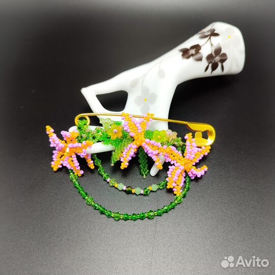 Брошь Змея изящная из бисера