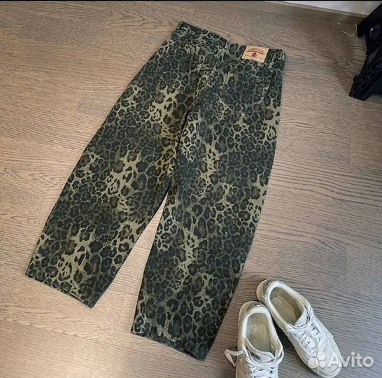 Джинсы широкие леопарды