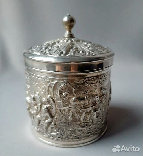 Старинная емкость для чая, кофе. Серебрение. Антик
