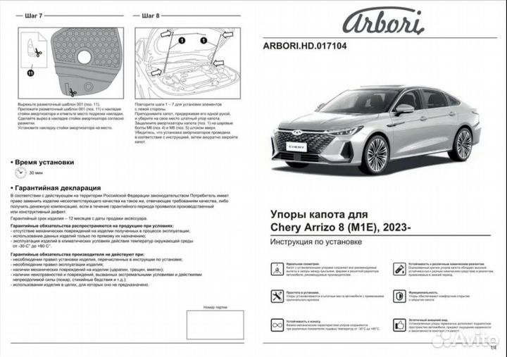 Упоры капота для chery Arrizo 8, 2022