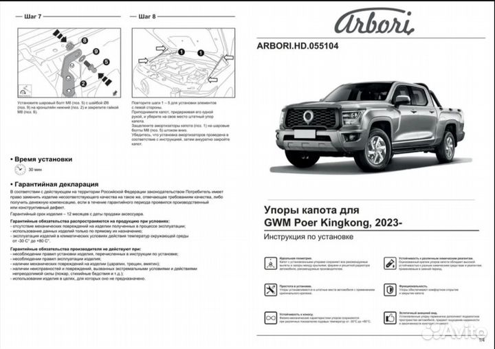 Упоры капота для GWM Poer Kingkong, 2023