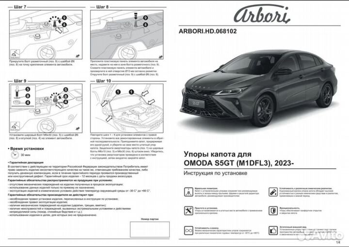 Упоры капота для omoda S5 GT, 2023, к-т 2 шт