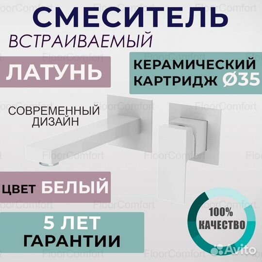 Смеситель для раковины встраиваемый белый