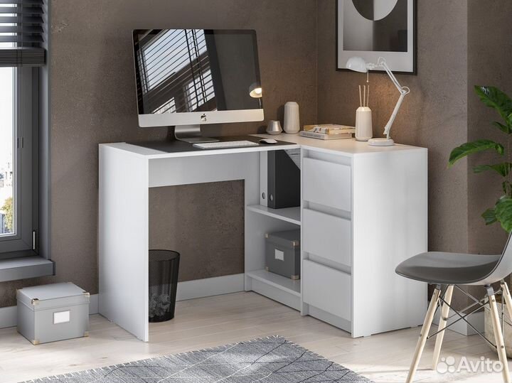 Компьютерный стол угловой белый с ящиками