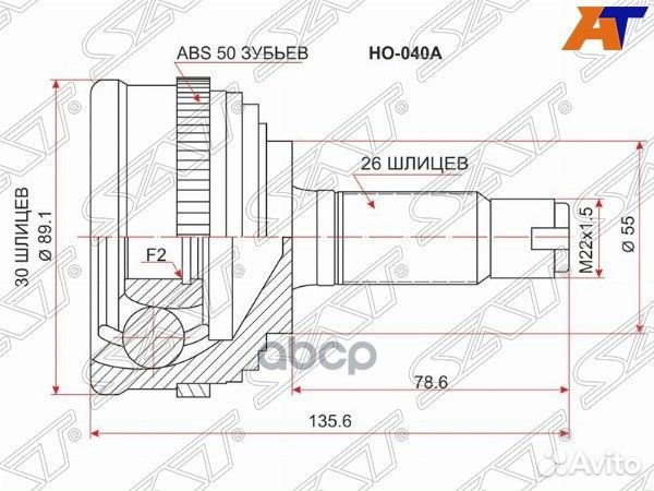 Шрус наружный honda CR-V RD1 B20B 95-01 HO-040A