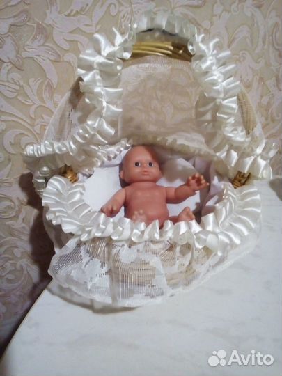 Кукла пупс 21 см в корзине - переноске