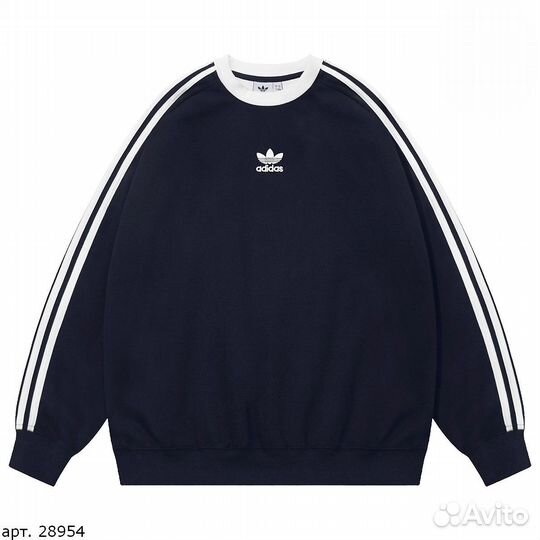 Свитшот Adidas темно синий с полосками на рукавах