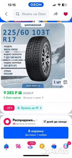 Продам зимнию резину R17