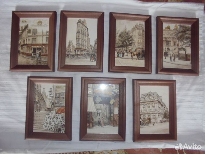 7 панно Улицы Парижа 19 в дерев рам 13х18 стекло