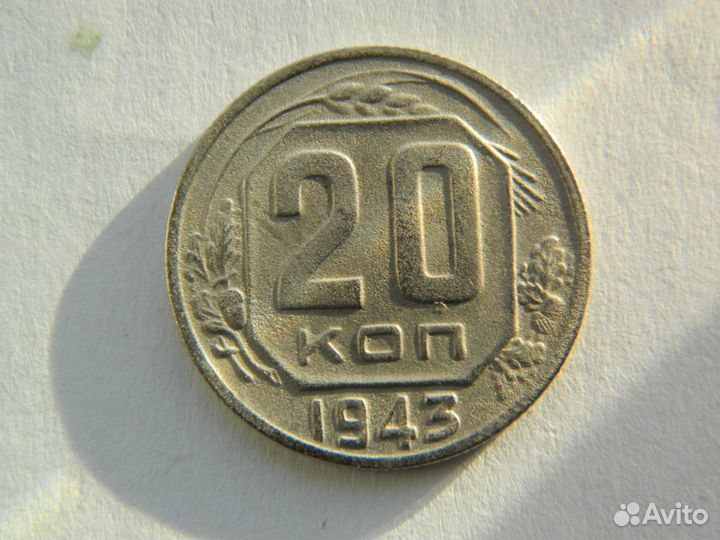 20 коп 1943 Федорин 61 с ямкой