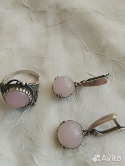 Комплект серьги и кольцо 18 размера. Серебрение