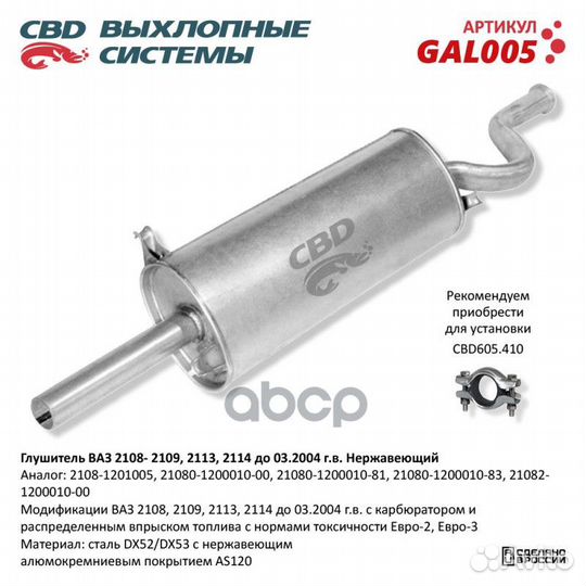 Глушитель ваз 2108, 2109 и их модификации CBD