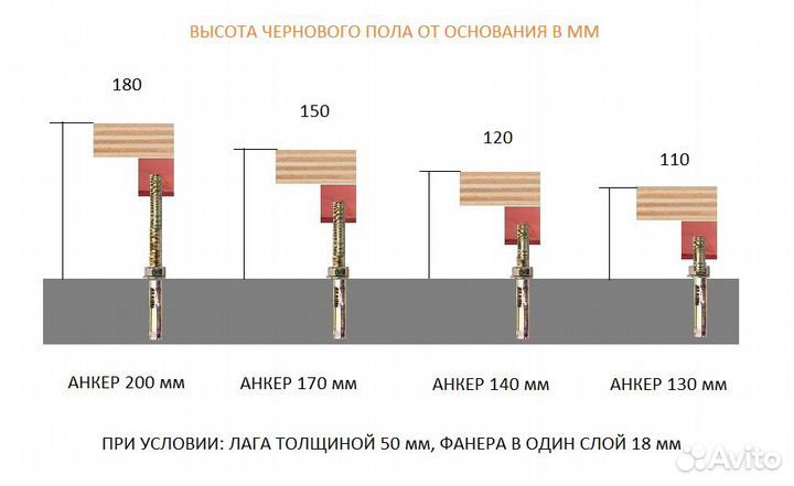 Анкер для регулируемых полов 170 мм