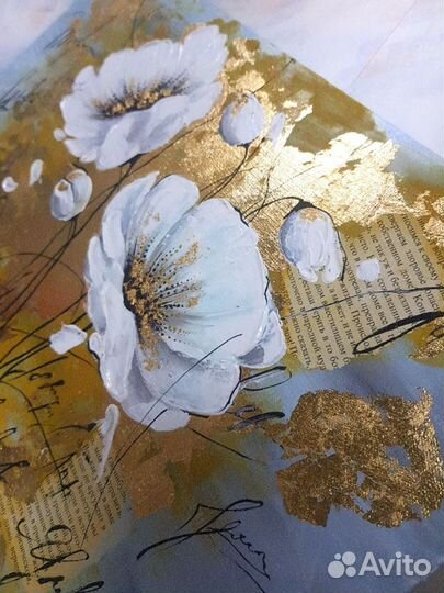 Интерьерная картина цветы с поталью