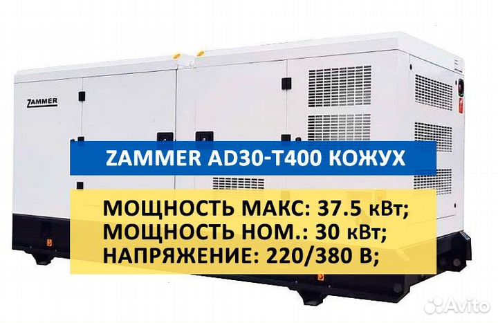 Дизельный генератор zammer AD-30-Т400 в кожухе