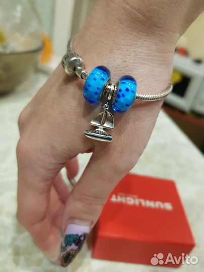 Браслет серебряный "змейка" + 3 шарма sunlight