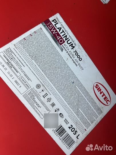 Sintec Platinum 7000 5W-40 / Бочка 205 л