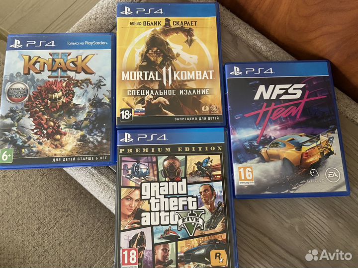 1 800 ₽Диски на ps4Диски на ps4Диски в отличном состоянии. Продаю: Grand theft auto; Need For Speed Heat; Mortal Kombar 11 (спец. издание); Knack 2 (можно играть на двух геймпадах). Цена указана за 1 шт.