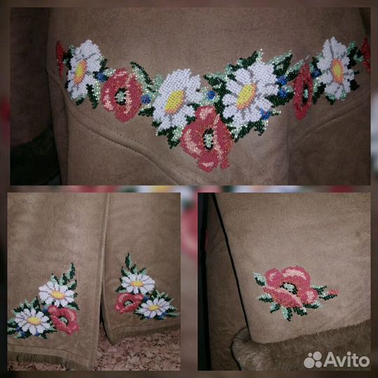 Дубленка с ручной вышивкой бисером